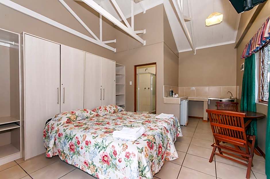 This unit is an Open Plan Log-Cabin chalet (1 room) sleeping 4 people with a full kitchen, lounge area and bathroom. There are 2 single beds with a sleeper couch that pulls out into an additional 2 single beds. All bedding and towels are provided as well the necessary crockery and cutlery. Each unit has a private braai area for your convenience.